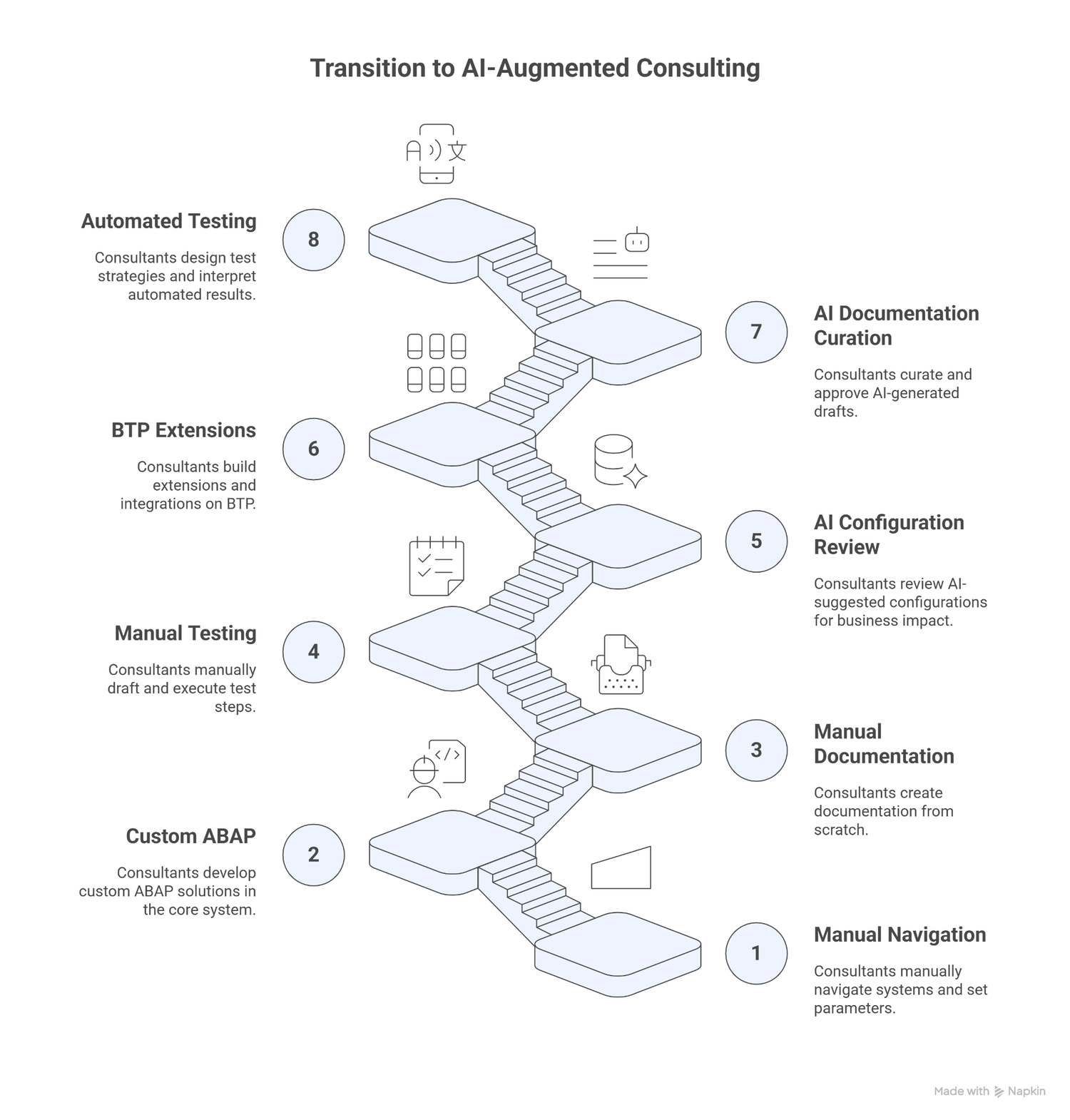 In short, the consultant’s expertise is no longer defined by how fast they can configure or code, but by how effectively they can guide AI outputs and align them with business objectives.