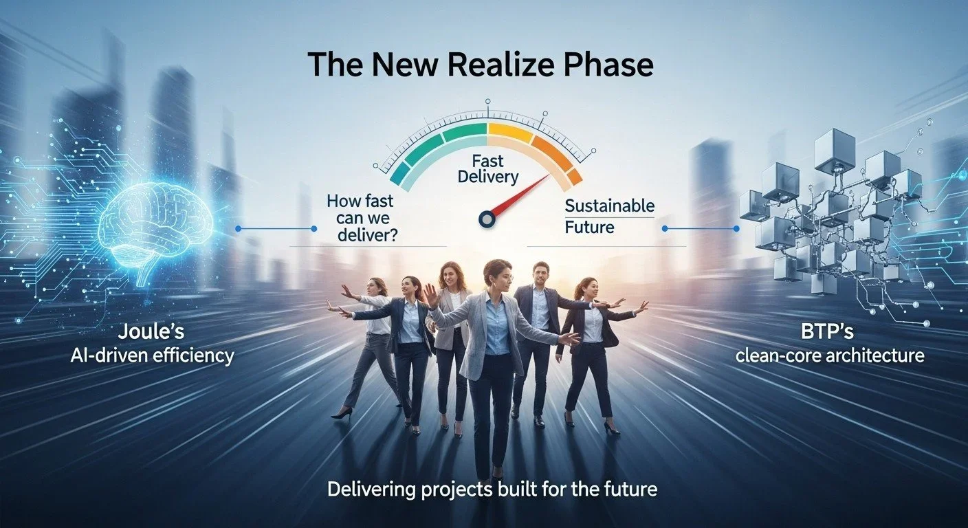 Traditionally, Realize has been the most demanding part of the journey: weeks of configuration, long hours of development, and painstaking cycles of testing and documentation. But in 2025, the picture is changing. AI copilots like SAP Joule and the Business Technology Platform (BTP) are reshaping how Realize is executed. For consultants, this is not just about speeding things up—it’s a redefinition of their role, moving away from manual effort toward AI-assisted delivery and strategic validation.